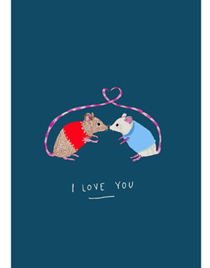 Sweet but not sickly, this adorable kissing mice card is just the right side of soppy.