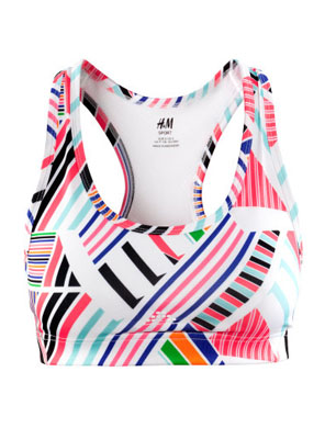 With a geometric print, this multi-coloured sports bra makes a bold statement as well as offering medium support. Designed from fast-drying functional fabric, this retro sports bra will give you motivation to workout and show off those abs.
