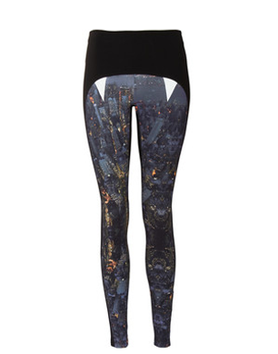 Wardrobe meets workout with these Manhattan skyline print stretch leggings featuring perforated panels for ventilation. A fun way to inject the city that never sleeps into your daily workout routine, simply pair these leggings with a simple black tank and tonal trainers.