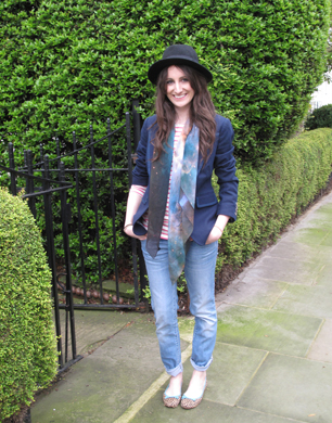 The print clash trend was seen in various collections from Dolce & Gabbana to Mary Katrantzou, but if the vibrant hues and quirky patterns seem a little daring, here’s how to rock the trend into your weekend wardrobe. Astrid clashes Boden’s Stripe Top in candy pink with Leopard Print Pumps and finishes the look off with Christopher Kane’s iconic constellation print scarf. A classic Navy Blazer and cute fedora finish the look of perfectly. It shouldn’t work but it does.