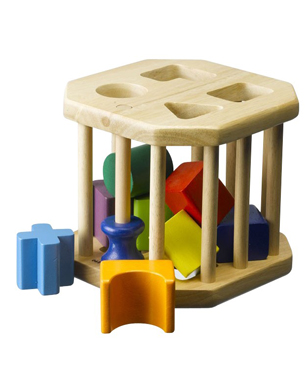This classic wooden shape sorter helps your little one improve hand eye coordination by having to match the corresponding shape blocks into the correct shape holes. Fun to play with and a source of hours of entertainment, this toy would make a great present for toddlers.
